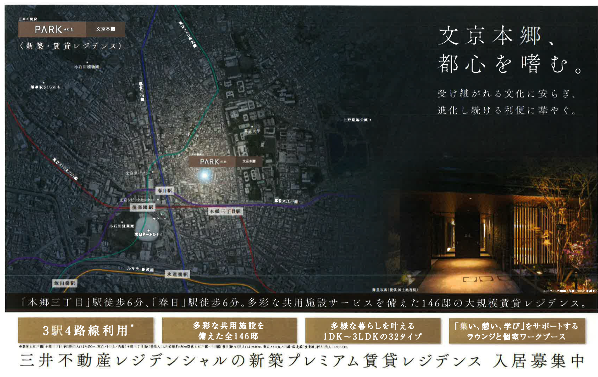 本郷三丁目駅から徒歩6分、春日駅から徒歩6分、後楽園駅から徒歩9分!2025年に竣工したばかりの新築物件です☆内見申し込み期間:1月8日〜22日
